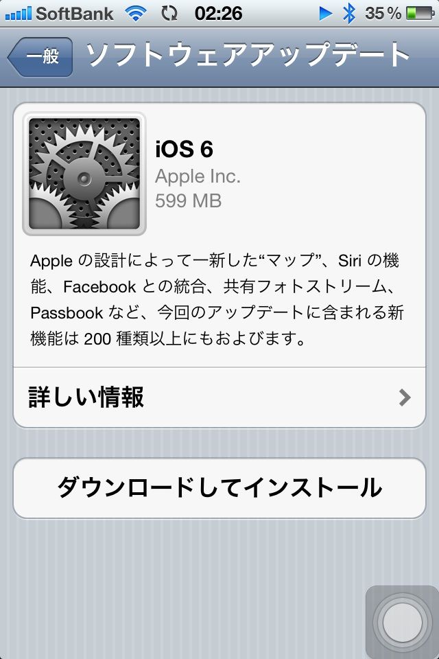 September 20, 2012 iOS6 へのアップロードがキター! iOS6 へのアップデート日本では 9月20日(木) 午前2:00 よりダウンロード可能となったようです。日本では一部使えない機能があるようですが、新しく採用される map アプリなど、楽しみな事がいっぱいですね。今回のアップデート、ちょっと不安なので、周りの状況を見ながら判断したいと思います。「後出しジャンケンです!」 (キッパリ) 「iPhone」カテゴリの最新記事 < 前の記事次の記事 > コメント コメントフォーム 名前 コメント 評価する リセット リセット 顔 星 投稿する 情報を記憶